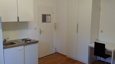 Dieses Zimmer ist vollmöbliert inkl. Singleküche und Parkettboden ausgestattet. Alle nötigen Kochutensilien wie Töpfe, Geschirr, Gläser usw. sind vorhanden.