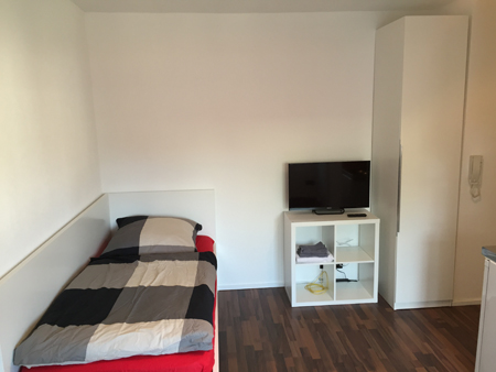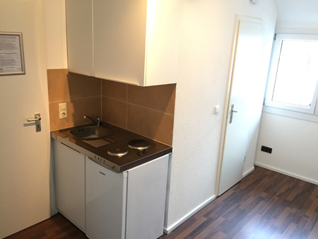 Dieses Zimmer ist vollmöbliert inkl. Singleküche und Lamminatboden ausgestattet. Alle nötigen Kochutensilien wie Töpfe, Geschirr, Gläser usw. sind vorhanden.