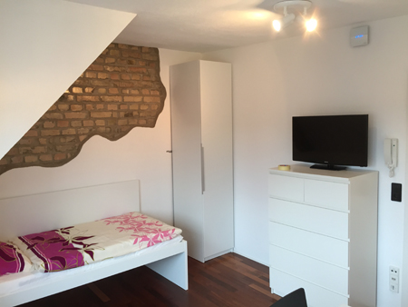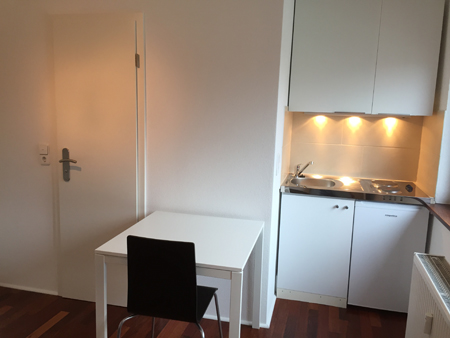 Dieses Zimmer ist vollmöbliert inkl. Singleküche und Parkettboden ausgestattet. Alle nötigen Kochutensilien wie Töpfe, Geschirr, Gläser usw. sind vorhanden.