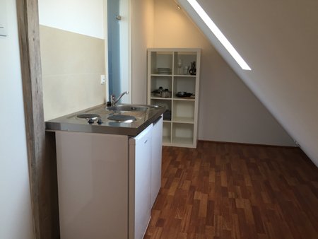 Dieses Zimmer ist vollmöbliert inkl. Singleküche und Lamminatboden ausgestattet. Alle nötigen Kochutensilien wie Töpfe, Geschirr, Gläser usw. sind vorhanden.