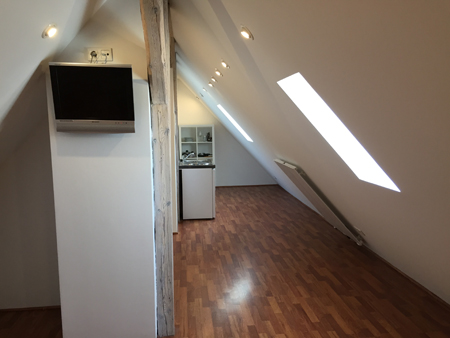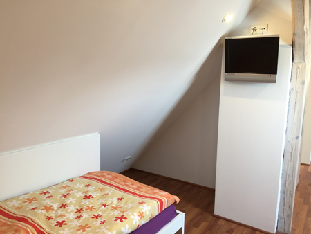 Das Zimmer verfügt über zwei Dachfenster und ist entsprechend hell.