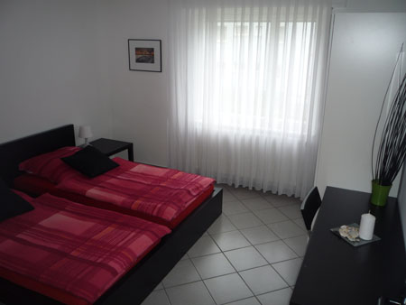 Das geräumige Schlafzimmer ist mit 2 Betten, Schreibtisch, Stuhl sowie einem Kleiderschrank mit Einbautresor ausgestattet.