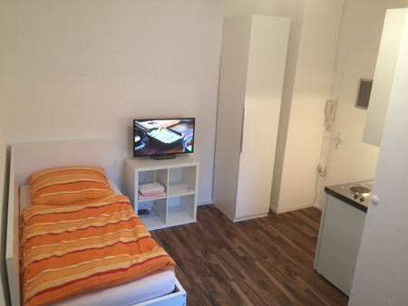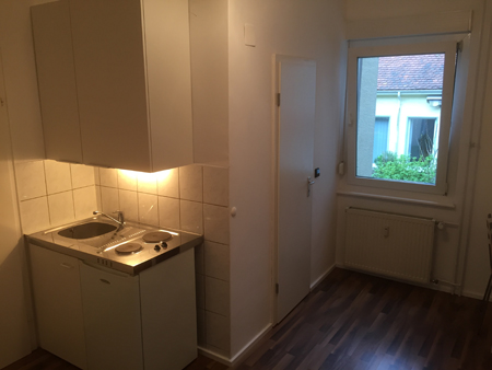 Dieses Zimmer ist vollmöbliert inkl. Singleküche und Laminatboden ausgestattet. Alle nötigen Kochutensilien wie Töpfe, Geschirr, Gläser usw. sind vorhanden.
